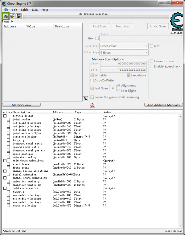 需要CE(Cheat Engine)加載。啟動(dòng)CE(Cheat Engine)點(diǎn)擊左上角的【一個(gè)放大鏡一個(gè)電腦】的圖標(biāo),就是讀取查找當(dāng)前進(jìn)程