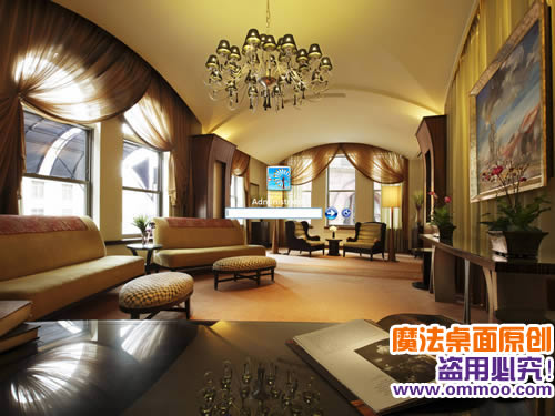 魔法桌面歐式家居電腦桌面主題,選用歐式裝修風(fēng)格圖片作為壁紙。躺椅、沙發(fā)、壁爐、吊燈無一不彰顯著浪漫的歐洲風(fēng)情,使得您在寒冷的冬季體驗(yàn)溫馨的歐式情懷