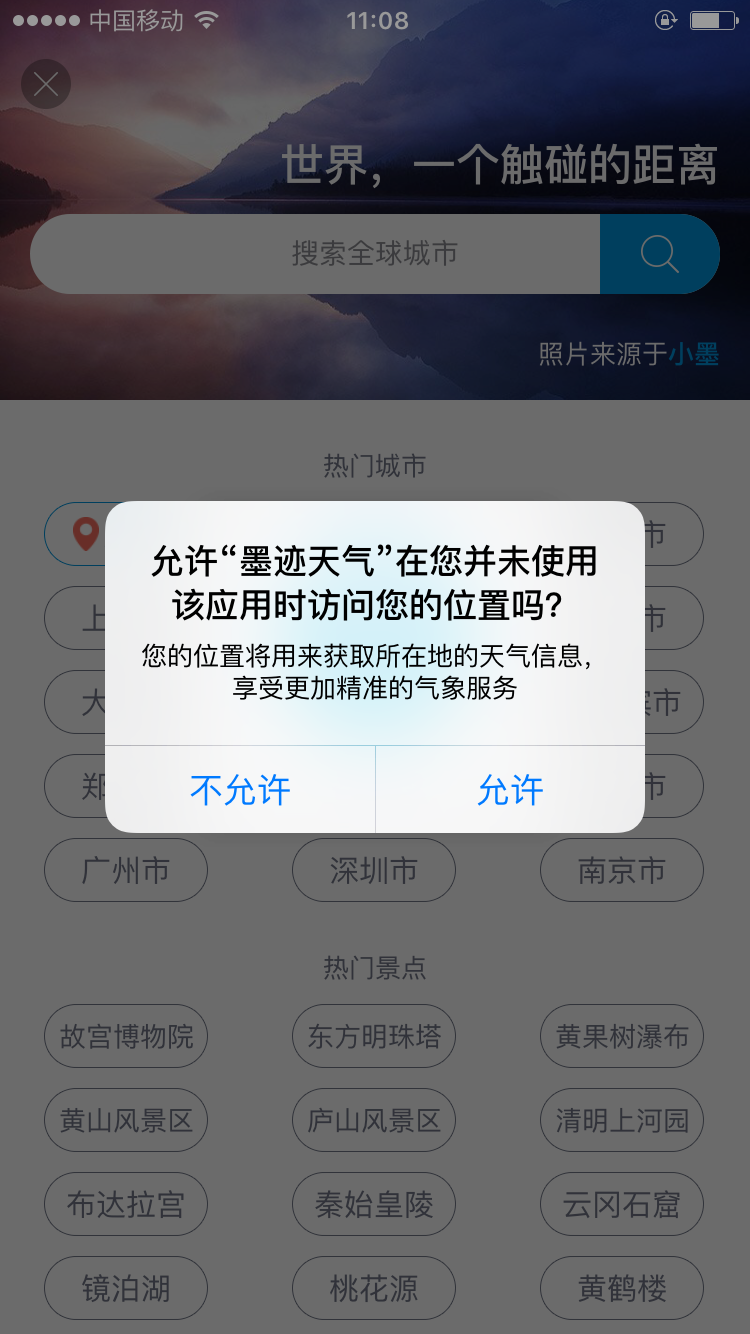 2、在彈出的對話中選擇“允許”(若選擇不允許,用戶則需手動(dòng)添加所在城市名稱)