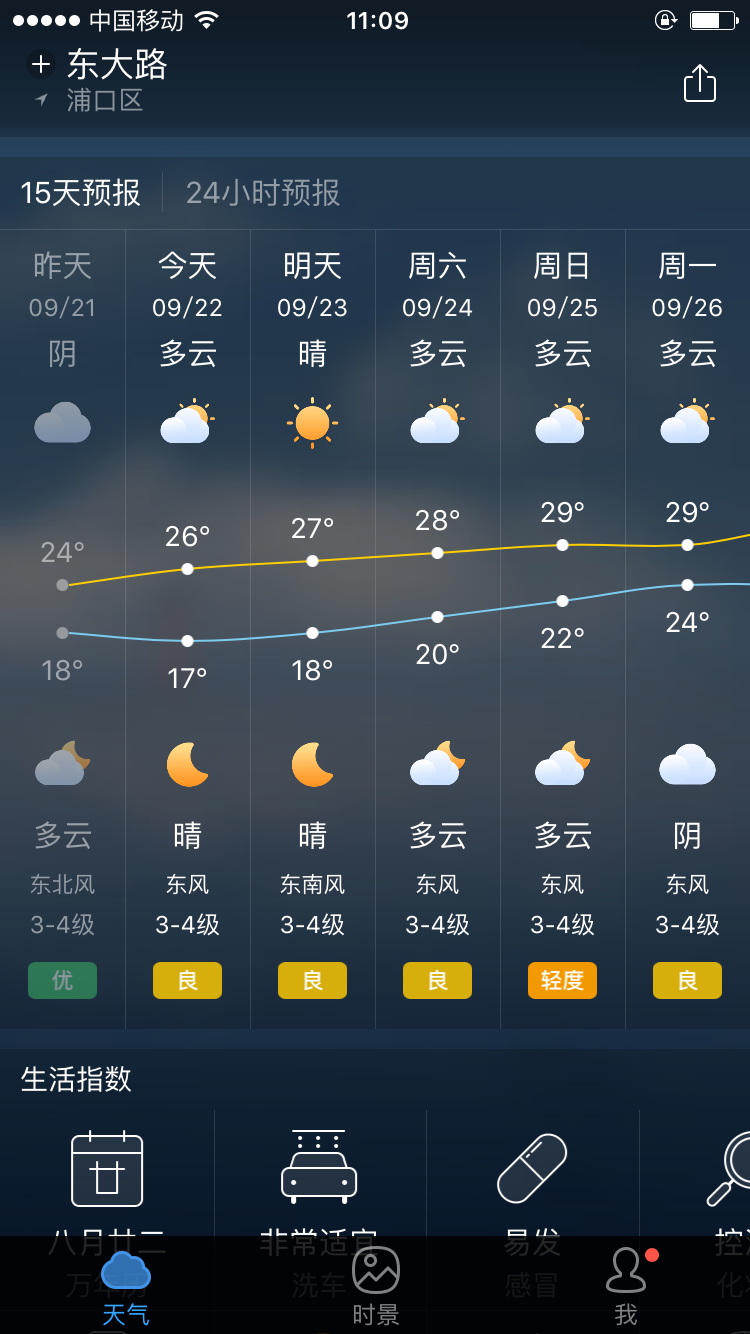 4、除了當(dāng)天的天氣外,用戶還可查看未來多達(dá)15天的天氣預(yù)報(bào)以及提供生活方面的一些小建議