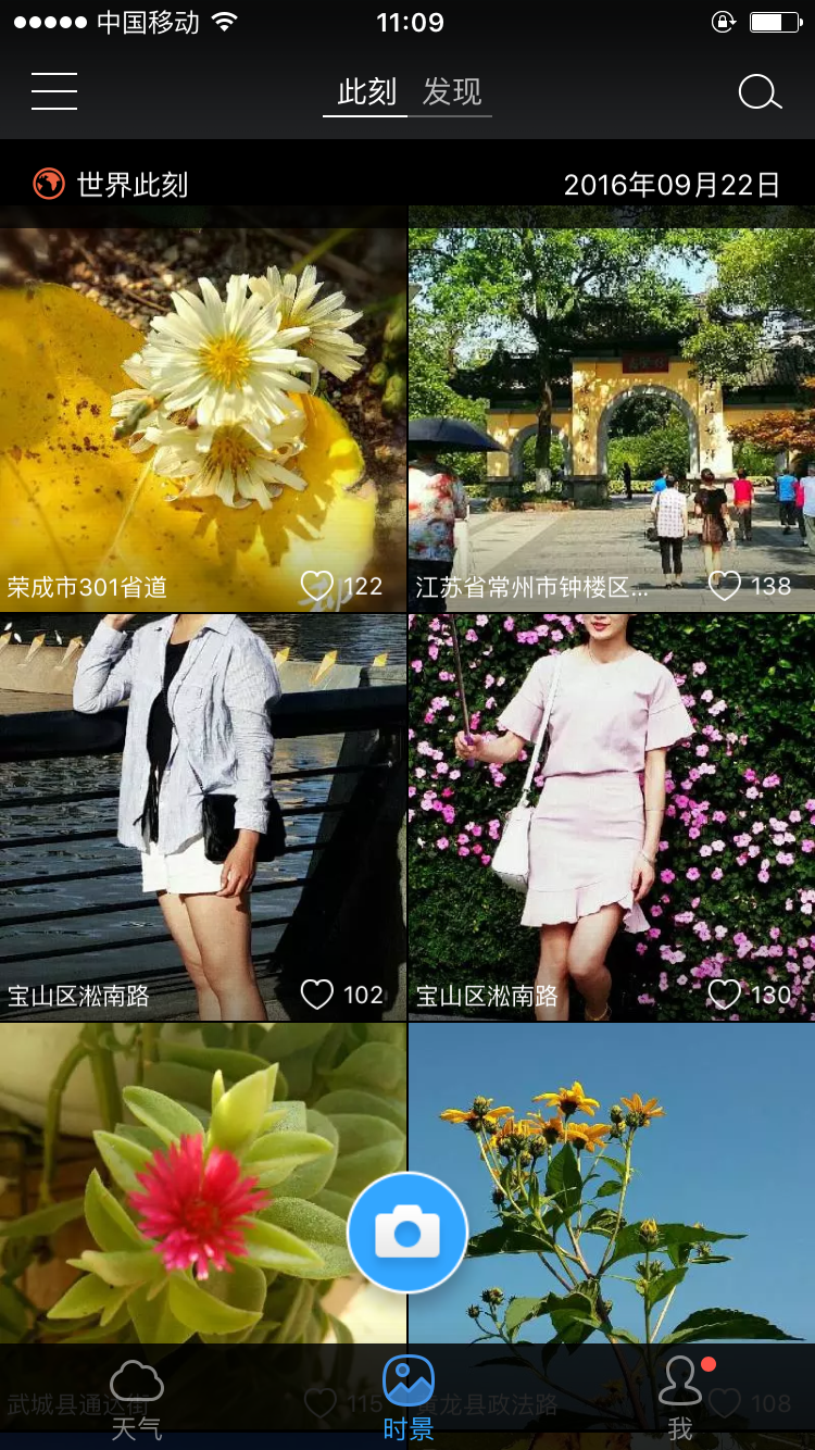 3、打開客戶端進(jìn)入【時(shí)景】,即可看到好多墨跡天氣的小伙伴發(fā)的實(shí)景圖片