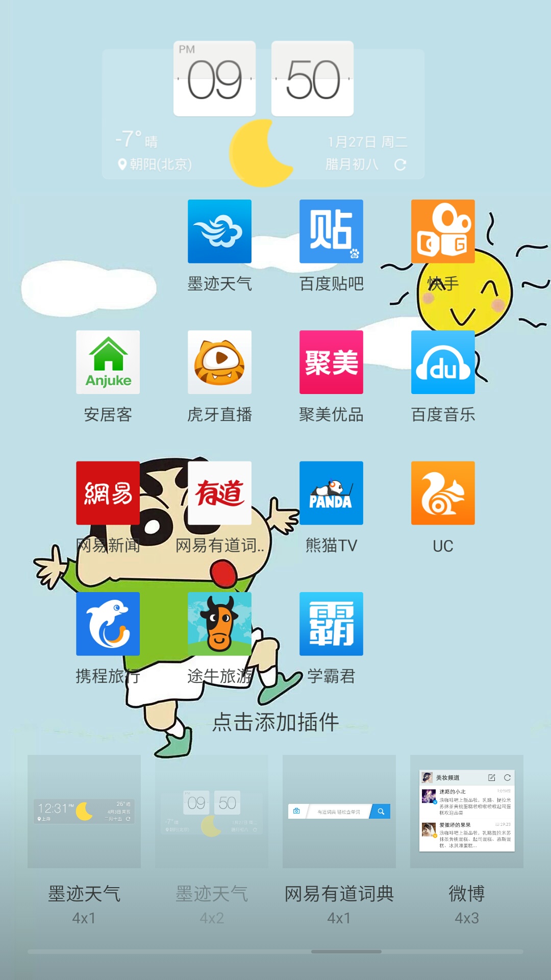 2、選擇某種尺寸的墨跡天氣小插件,長按拖動(dòng)到桌面上即可
