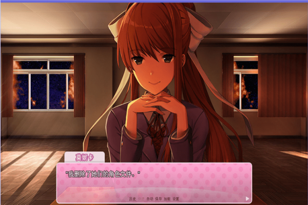 繼續(xù)游戲,刪除monika,進入結(jié)局環(huán)節(jié)。