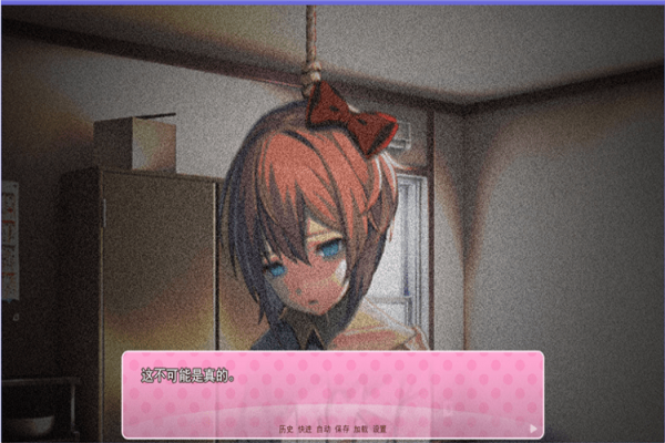 轉(zhuǎn)過天來,去學(xué)校見monika,去找sayori——好的,現(xiàn)在可以直面sayori死亡了。一串死亡演出過后,進入二周目。