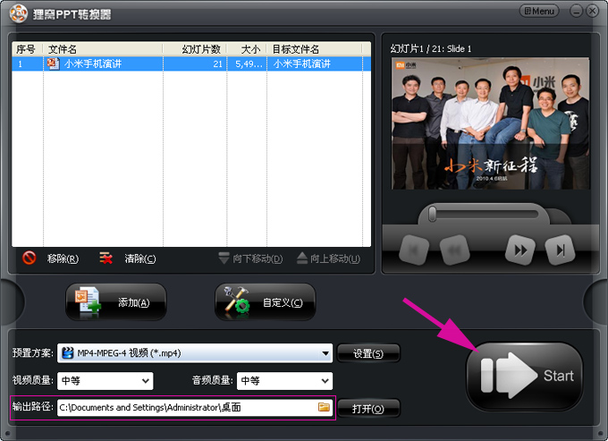 輸入格式:PPT、PPTX輸出格式:rmvb、3gp、mp4、avi、flv、f4v、mpg、vob、dat、wmv、asf、mkv、dv、mov、ts、mts、ipod、iphone、psp、ipad、高清、電視等等常用流行視頻格式。