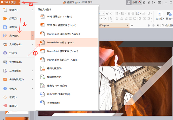 把要轉(zhuǎn)換成視頻的PPT文件用你自己電腦上的WPS打開(kāi),點(diǎn)擊軟件右上角的“wps演示”,選擇“另存為”。這里會(huì)出現(xiàn)很多格式,我們選擇保存為*.pptx格式。其實(shí)小編覺(jué)得保存為pptx或者是PPT格式都可以,個(gè)人感覺(jué)沒(méi)有太大的區(qū)別一般選擇.pptx。