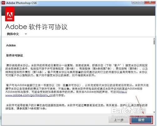 3、在許可協(xié)議界面單擊【接受】按鈕