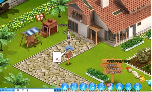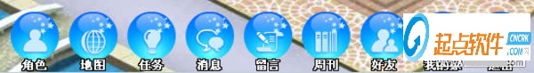 B)屏幕下方設(shè)置有快捷菜單,由角色、地圖、背包、任務(wù)、消息、留言、周刊、好友、我的家、退出等快捷功能組成,點(diǎn)擊相應(yīng)按鈕即可快速跳轉(zhuǎn)到相應(yīng)功能。