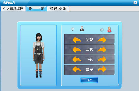 角色:進(jìn)入角色設(shè)置功能,可以設(shè)置個(gè)人基礎(chǔ)信息、人物換裝、修改密碼等。