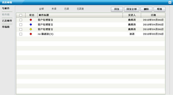 消息:與郵箱功能一樣,點(diǎn)擊可以查看郵箱,點(diǎn)擊郵件進(jìn)行回復(fù)。