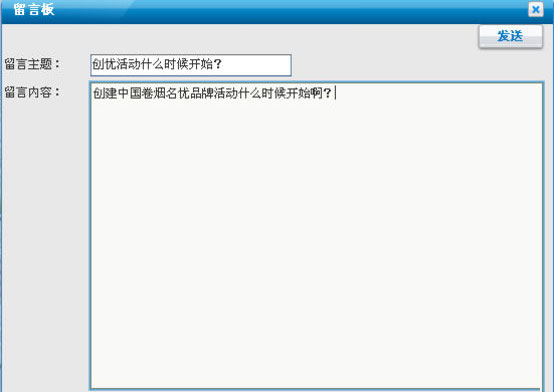 留言:點(diǎn)擊進(jìn)入留言界面,零售用戶可以向煙草公司留言。直接錄入留言主題和留言內(nèi)容即可。