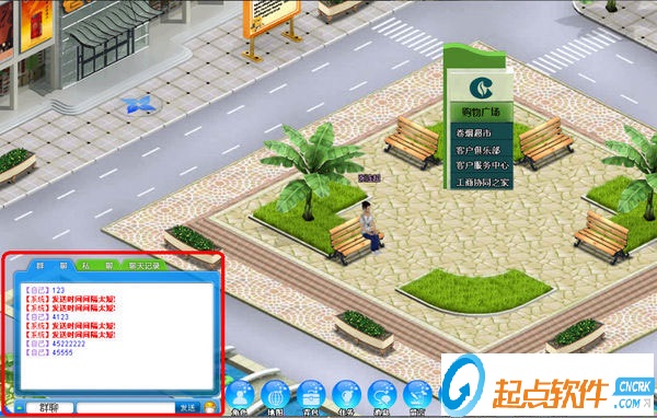 C)屏幕左下方為聊天窗口,提供群聊和私聊兩種模式,用戶可以和場(chǎng)景中的其他用戶進(jìn)行文本聊天。
