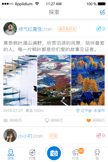 探索:探索附近用戶分享的樂趣,您會找到相同的生活方式、興趣愛好的朋友;并且會不斷發(fā)現(xiàn)新的驚喜。