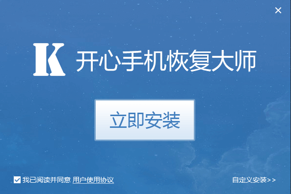 一、在本站下載開(kāi)心手機(jī)恢復(fù)大師最新版安裝包,并打開(kāi),可以點(diǎn)擊【自定義安裝】,設(shè)置軟件的安裝位置等信息。