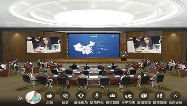 在視覺上,實現(xiàn)了二維平面到三維立體的升級在立體空間中實現(xiàn)會場的布置、會議文件播放、會后舉手互動等更多可能,同時會議室真實還原現(xiàn)實場景,讓人從枯燥乏味的會議現(xiàn)場轉(zhuǎn)移到生動趣味的三維空間,將會議變成一種享受