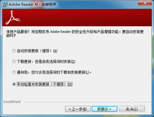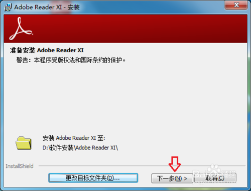 打開Adobe Reader XI安裝程序重新進行安裝。