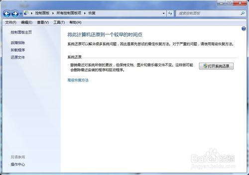 在“所有控制面板”選項里再找到“恢復(fù)”選項,打開“恢復(fù)”選項。