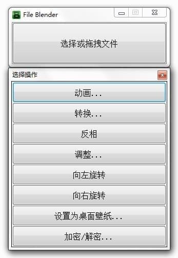 1 將圖像文件或MP3文件拖拽到主界面(你可以一次拖拽多個(gè)文件)。2 根據(jù)您拖拽的文件類型,F(xiàn)ile Blender 將顯示相對(duì)應(yīng)的選項(xiàng)(動(dòng)作)來(lái)提供額外的菜單。單擊這些動(dòng)作按鈕就可以繼續(xù)操作。