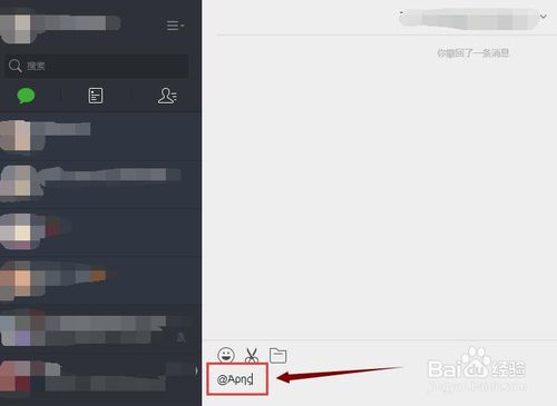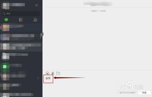 4、如果你想@誰,就可以先在電腦上打一個(gè)@,再在@后面輸入那個(gè)人的微信昵網(wǎng)名就可以了。