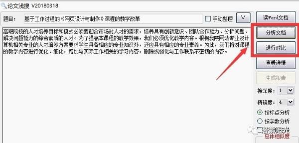 3點(diǎn)擊“進(jìn)行對比”,將切割的語句用百度進(jìn)行搜索,然后返回搜索結(jié)果進(jìn)行分析