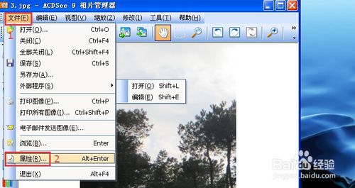 打開照片屬性窗口。依次點擊“文件”、“屬性”,打開照片屬性窗口。