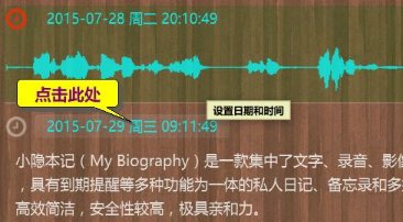 設(shè)置日期: 點(diǎn)擊主界面顯示區(qū)中某條筆記的日期與時間,可修改該筆記的發(fā)布時間。