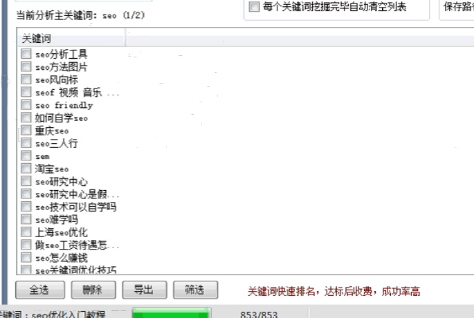 軟件在提供關(guān)鍵詞挖掘基本功能的同時,配備了關(guān)鍵詞預(yù)過濾,過濾,關(guān)鍵詞各項分析指標任意排序,關(guān)鍵詞數(shù)據(jù)多種格式(txt、htm、Excel)導(dǎo)出等豐富的輔助分析功能。