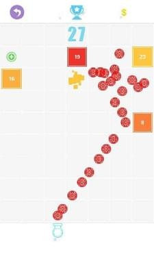 進(jìn)擊的彈珠與以往的打磚塊游戲不同,您完全不用擔(dān)心丟失小球的問題。可以使用源源不斷的小球擊碎無限磚塊,專注于破壞!容易上癮簡單又小巧的單機(jī)游戲!你再也不用擔(dān)心因?yàn)榻硬坏角?,而使得游戲結(jié)束了。你需要關(guān)注的,只是如果打破所有的磚塊!