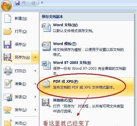 安裝成功后,你重啟一下你的word,你再次點(diǎn)擊word最左上角office圖標(biāo)下拉菜單,另存為,你就發(fā)現(xiàn)跟剛才不一樣了。如下圖所示,點(diǎn)擊就可以直接保存轉(zhuǎn)換了。