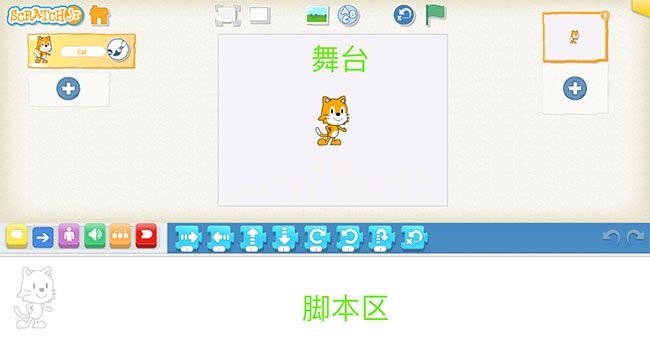 ScratchJr的定位則是在五到七歲年齡階段的孩子。ScratchJr上都是圖示,這讓六七歲的孩子們更加容易理解。