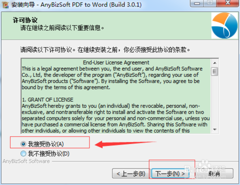 3、然后要選擇”我接受協(xié)議“,再點”下一步“繼續(xù)安裝