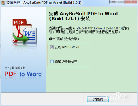 8、運行完后,勾選”運行"PDF to Word",然后點“完成”
