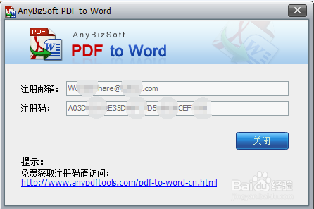 第一步:首先從愛學府軟件園下載并安裝AnyBizSoft pdf to Word。第二步:運行AnyBizSoft pdf to Word程序輸入安裝程序彈出的或者接下來的注冊信息并點擊注冊按鈕即可破解成功。