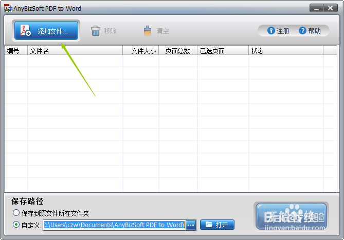 2、從左上角添加文件里選擇要轉換的pdf文件,如圖所示。