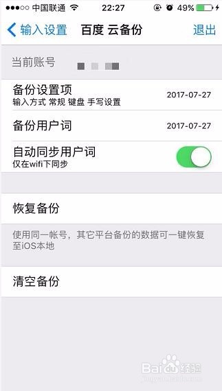 在輸入設(shè)置界面的云備份中,還可以輸入個人百度賬號。登錄的好處在于如果使用者在其他終端如電腦、平板等使用百度輸入法,只要在這些終端登錄帳號,則個人在手機(jī)上使用的詞庫、常用詞匯等會自動更新至這些終端,提高了使用者的輸入體驗和效率。