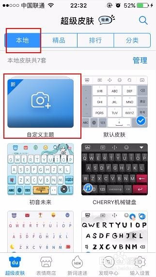在超級皮膚中可以選擇自己喜歡的輸入法背景顏色,也可以使用本地圖片進(jìn)行替換。