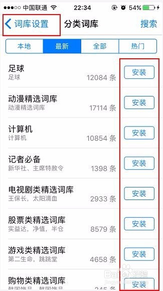 在新詞速遞中點擊詞庫管理,里面提供了最新的詞匯,包括網(wǎng)絡(luò)流行語、電視劇名詞、體育名詞等,可以下載安裝到手機(jī)直接使用。
