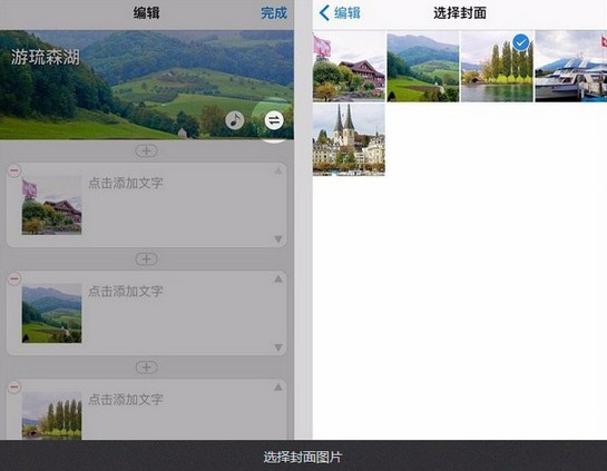 4、點(diǎn)擊“切換”圖標(biāo),在已導(dǎo)入的圖片中選擇一張作為封面。封面圖片還將成為分享時(shí)的縮略圖。