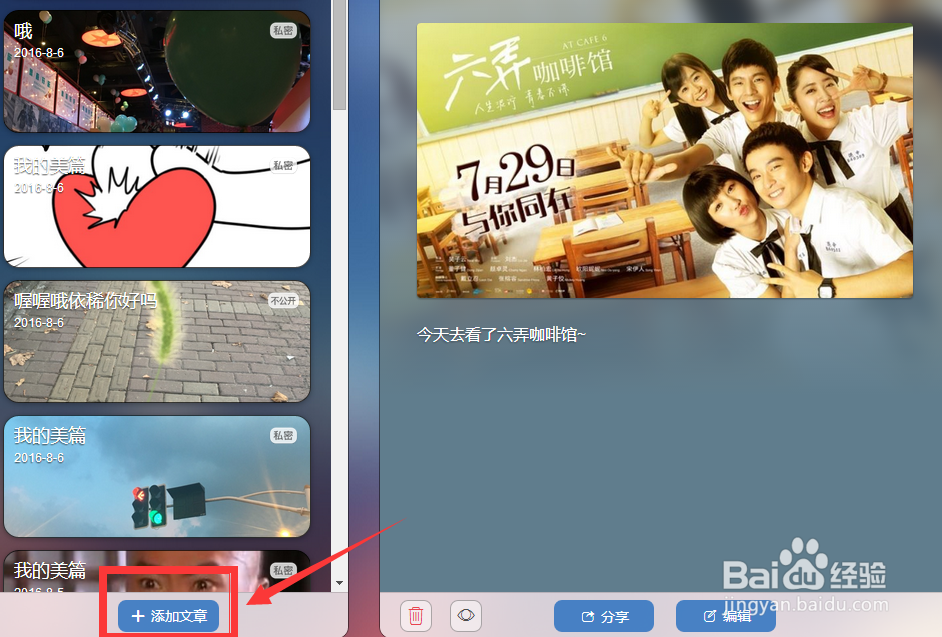 1、發(fā)布新的文章:在成功登陸后的頁面,左下方有“添加文章”的按鈕,點(diǎn)擊即可導(dǎo)入照片。