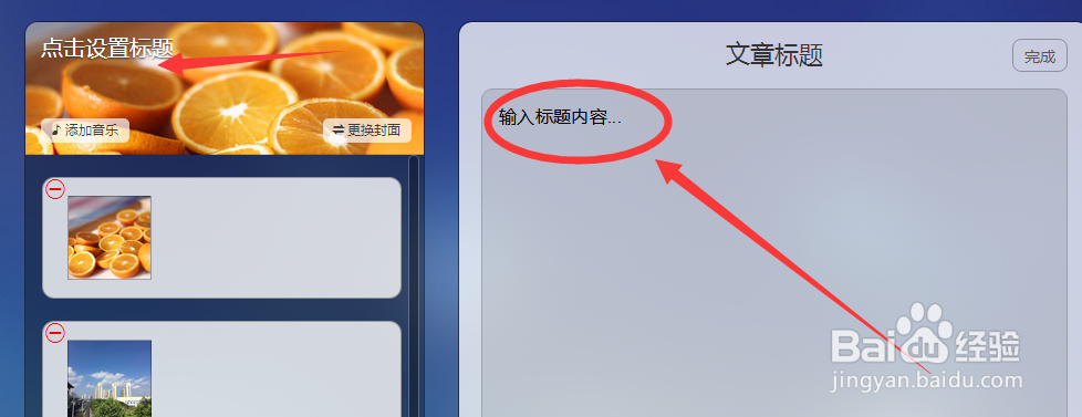3、點(diǎn)擊標(biāo)題區(qū)域,給文章設(shè)置一個(gè)標(biāo)題。