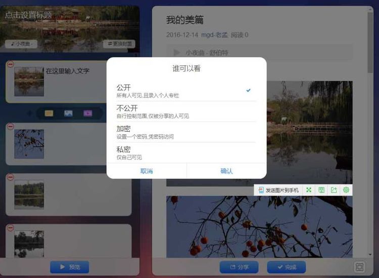 文章點(diǎn)擊完成發(fā)布后,下方偏左有小眼睛的圖標(biāo),點(diǎn)擊設(shè)置“公開”“不公開”“加密”“私密”等權(quán)限。