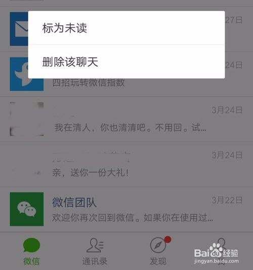 太多消息處理不過來,使用【未讀消息】標(biāo)記。長按需要設(shè)置的微信群,選擇【標(biāo)為未讀】后,微信群右上角就會顯示紅色數(shù)字提醒未讀信息啦。