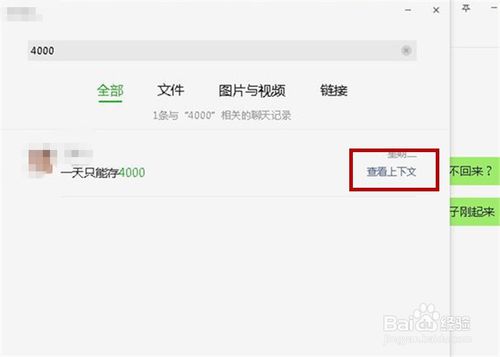 3、輸入關(guān)鍵字后,系統(tǒng)便會自動搜索出含有關(guān)鍵字的聊天記錄。點擊聊天信息有邊的“查看上下文”按鈕。
