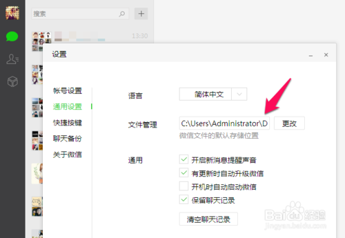 2、在微信電腦版的通用設(shè)置中我們可以看到文件管理,這個就是微信電腦版聊天記錄保存的位置,我們將存儲地址復(fù)制。