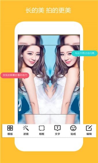 *鏡像效果,當然你可以選擇不同的鏡像布局如左右對稱,中心對稱等。*豐富的貼畫使你的照片與眾不同。