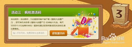 2.選擇“活動(dòng)三:瘋搶激活碼”,輸入電信手機(jī)號(hào)(暫不支持移動(dòng)或聯(lián)通號(hào)碼),點(diǎn)擊獲取激活碼按鈕。