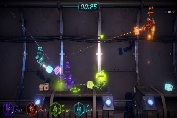 這是一款非常刺激的機(jī)器人射擊游戲——《Grabity》。游戲以快節(jié)奏的競(jìng)技場(chǎng)為核心,玩家可以選擇不同的機(jī)器人加入戰(zhàn)斗,收集醫(yī)療包、盾牌、推進(jìn)器等道具,并借助地形來(lái)?yè)魯?duì)手。游戲支持2-4名玩家,每局比賽時(shí)間都不是很長(zhǎng),玩起來(lái)非常過(guò)癮。【配置要求】