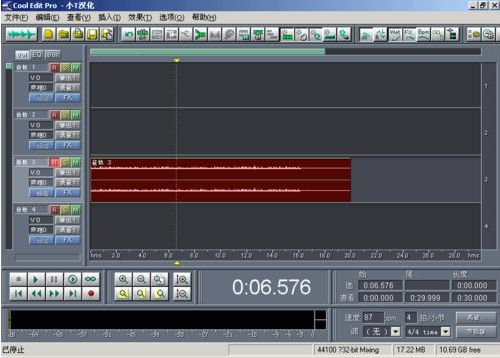 1、首先,我們要做好準(zhǔn)備工作。把你的耳機作為監(jiān)聽音箱(此步的意義就是說用耳機來聽伴奏音樂,否則在你錄音時會錄入音樂和人聲的混合聲音),把你的mic調(diào)試好。然后下載我們要用到的工具COOLEDITPRO2.0及其插件。安裝好cooleditpro2.0后,再把插件安裝到安裝目錄下的子目錄中,新建一個名曰“DX”的文件夾,把所有的插件都安裝釋放到這里。打開cooleditpro2.0后,會自動建立一個新的工程。界面如下:
