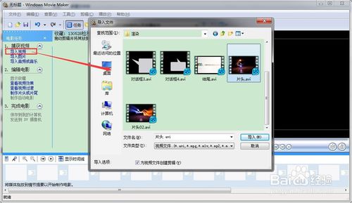 如何利用windows movie maker制作視頻在主界面上點擊“導入視頻”,導入我們所需要的視頻。