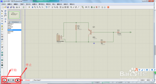 整個電路設(shè)計好后點擊左下角的的箭頭就可以對電路進行測試